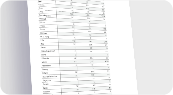 2021 Global Workforce Composition (Gender and Country) + COUNTRY FEMALE MALE TOTAL Austria 1 3 4 Belarus 2 3 5 Belgium 78 427 505 Brazil 60 537 597 Canada 114 476 590 Chile 12 32 44 China 638 1,302 1,940 Czech Republic 54 225 279 Denmark 2 5 7 Estonia 1 7 8 Finland 55 195 250 France 113 553 666 Germany 23 72 95 Hong Kong 1 1 2 India 110 1,756 1,866 Italy 23 284 307 Japan 4 16 20 Korea, Republic of 17 284 301 Latvia 2 7 9 Lithuania 46 221 267 Mexico 374 1,220 1,594 Netherlands 11 156 167 Norway 9 9 Poland 98 673 771 Russian Federation 122 379 501 Singapore 9 35 44 Slovakia 2 2 Spain 30 46 76 Sweden 70 341 411 Switzerland 5 13 18 United Arab Emirates 1 1 United Kingdom 11 104 115 United States 1,703 6,583 8,286 TOTAL 3,789 15,968 19,757 WORKFORCE DATA EMPLOYEE DATA Appendix B 2021 Owens Corning Sustainability Report | Appendices | 296