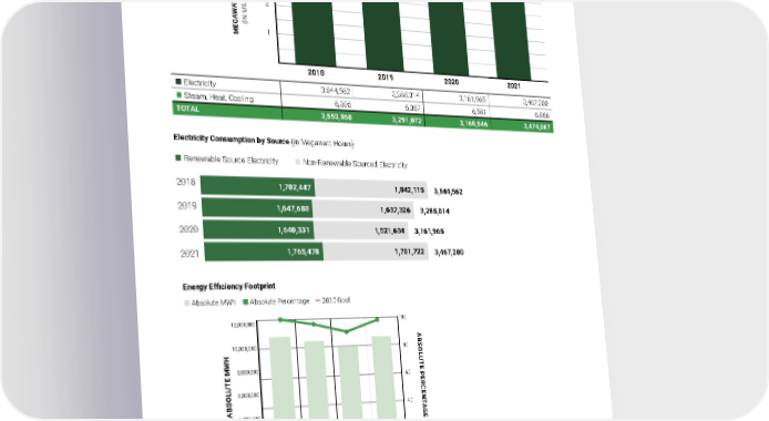ENVIRONMENTAL DATA ENERGY DATA Appendix C 2021 Owens Corning Sustainability Report | Appendices | 307 Indirect Energy by Source Energy Efficiency Footprint Absolute MWh Absolute Percentage ― 2030 Goal Absolute MWh 10,719,236 10,274,193 9,658,731 10,499,961 Absolute Percentage 100 96 90 98 Aggregate Intensity (MWh Normalized by Revenue - In Millions) 1,501.53 1,429.38 1,363.96 1,232.78 ABSOLUTE MWH ABSOLUTE PERCENTAGE 20 40 60 80 100 12,000,000 10,000,000 8,000,000 6,000,000 4,000,000 2,000,000 2018 2019 2020 2021 Electricity 3,544,562 3,285,014 3,161,965 3,467,200 Steam, Heat, Cooling 6,305 6,057 6,581 6,886 TOTAL 3,550,868 3,291,072 3,168,546 3,474,087 Electricity Consumption by Source (in Megawatt Hours) Renewable Source Electricity Non-Renewable Sourced Electricity 2020 2019 2018 3,544,562 3,285,014 3,161,965 3,467,200 2021 1,842,115 1,637,326 1,521,634 1,701,722 1,702,447 1,647,688 1,640,331 1,765,478 2018 2019 2020 2021 MEGAWATT HOURS (IN MILLIONS) 4 3 2 1