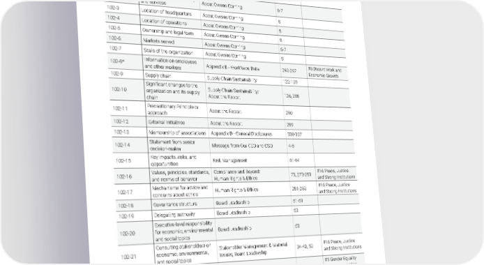 2021 Owens Corning Sustainability Report | Appendices | 365 GRI INDEX Appendix J DISCLOSURE NUMBER DESCRIPTION 2021 TEXT LOCATION PA G E NUMBER SDG TARGET LINKAGE 102-1 Name of the organization About Owens Corning 3 102-2 Activities, brands, products, and services About Owens Corning 6-7 102-3 Location of headquarters About Owens Corning 8 102-4 Location of operations About Owens Corning 8 102-5 Ownership and legal form About Owens Corning 8 102-6 Markets served About Owens Corning 6-7 102-7 Scale of the organization About Owens Corning 8 102-8* Information on employees and other workers Appendix B - Workforce Data 293-297 #8 Decent Work and Economic Growth 102-9 Supply chain Supply Chain Sustainability 122-135 102-10 Significant changes to the organization and its supply chain Supply Chain Sustainability; About the Report 126, 288 102-11 Precautionary Principle or approach About the Report 290 102-12 External initiatives About the Report 289 102-13 Membership of associations Appendix D - General Disclosures 330-337 102-14 Statement from senior decision-maker Message from Our CEO and CSO 4-5 102-15 Key impacts, risks, and opportunities Risk Management 61-64 102-16 Values, principles, standards, and norms of behavior Compliance and Beyond; Human Rights & Ethics 73, 273-283 #16 Peace, Justice and Strong Institutions 102-17 Mechanisms for advice and concerns about ethics Human Rights & Ethics 281-283 #16 Peace, Justice and Strong Institutions 102-18 Governance structure Board Leadership 51-53 102-19 Delegating authority Board Leadership 53 102-20 Executive-level responsibility for economic, environmental and social topics Board Leadership 53 102-21 Consulting stakeholders on economic, environmental, and social topics Stakeholder Management & Material Issues; Board Leadership 34-40, 53 #16 Peace, Justice and Strong Institutions 102-22 Composition of the highest governance body and its committees Board Leadership 51-52 #5 Gender Equality #16 Peace, Justice and Strong Institutions GRI 102: General Disclosures * See page 291 in About the Report for Owens Corning’s definition of worker