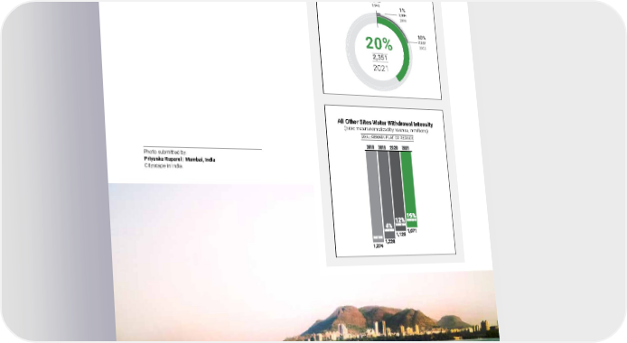 2021 Owens Corning Sustainability Report | Overview | Summary & Highlights | 24 Responsible Water Sourcing & Consumption By 2030, we will cut in half the amount we take from local water supplies in places where water is limited in quantity or quality. In addition, we intend to ensure that our other facilities remain at the same water intensity as our base of 2018, or lower when aggregated. Photo submitted by: Priyanka Ruparel | Mumbai, India Cityscape in India. High Water-Stress Sites Water Withdrawal Intensity (cubic meters normalized by revenue, in millions) GOAL: 50% R EDUCTION 20% 2,351 2021 All Other Sites Water Withdrawal Intensity (cubic meters normalized by revenue, in millions) GOAL: REMAIN FLAT OR REDUCE 201 8 BASE YEAR 2,94 0 1% 2,90 4 2019 10% 2,63 7 2020