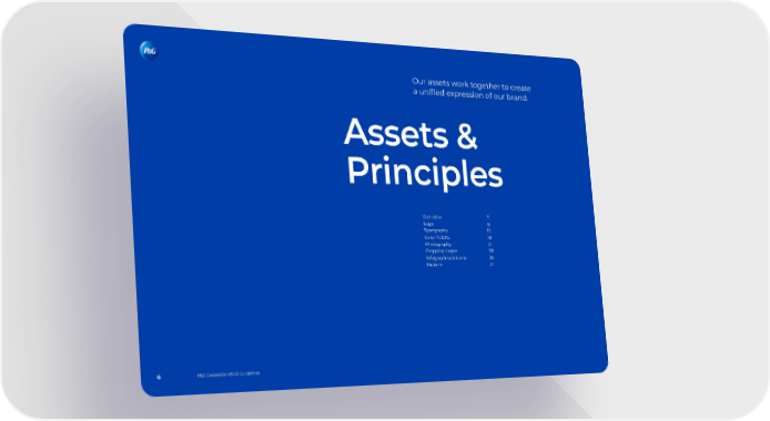 Our assets work together to create a uni昀椀ed expression of our brand. Assets & Principles Overview 7 Logo 8 Typography 15 Color Palette 18 Photography 21 Cropping Logos 28 Infographics & Icons 30 Pattern 31 6 P&G Corporate VIS ID Guidelines
