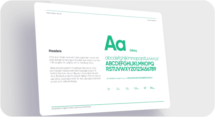 Gilroy is a modern sans serif with a geometric touch. An older brother of the original Qanelas font family. It comes in 20 weights, 10 uprights and its matching italics. Designed with powerful OpenType features in mind, each weight includes extended language support (+ Cyrillic), fractions, tabular igures, arrows, ligatures and more. Perfectly suited for graphic design and any display use, Gilroy could easily work for web, signage, corporate as well as for editorial design. Visual Identity | Pg. 18 www.ourpass.co Social Media & Digital Creative Guidelines | © 2020 Pass Headers Gilroy Gilroy Light Gilroy Regular Gilroy Medium Gilroy Semi Bold Gilroy Bold Gilroy Extra Bold abcdefghijk lmnopqrstuvwxyz abcdefghijklmnopqrstuvw xy z / ABCDEFGHIJKLMNOPQRSTUVWXYZ / ABCDEFGHIJKLMNOPQ RSTUVWXYZ0123456789 Aa