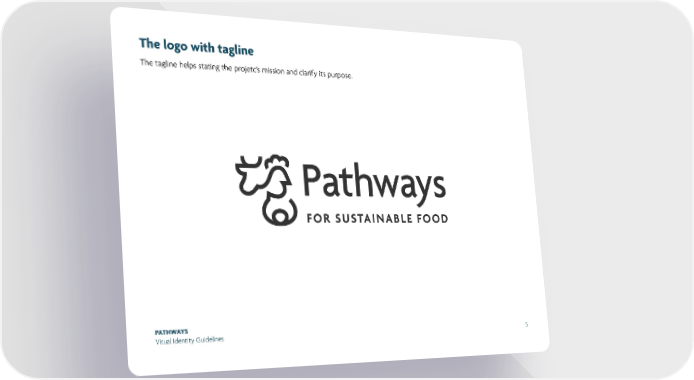 Pathways for Sustainable Food Brand Book Page 4 Page 6PAT H WAYS Visual Identity Guidelines 5 The tagline helps stating the projetc's mission and clarify its purpose. The logo with tagline