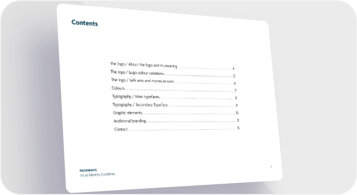 PAT H WAYS Visual Identity Guidelines 3 Contents The logo / About the logo and its meaning .................................... 4 The logo / Logo colour variations ............................................. 5 The logo / Safe area and minimum sizes ....................................... 6 Colours ..................................................................... 7 Typography / Main typefaces ................................................. 8 Typography / Secondary Typeface ............................................ 9 Graphic elements ........................................................... 10 Additional branding .......................................................... 11 Contact .................................................................... 12