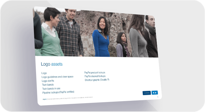 Logo assets Logo PayPal product lockups Logo guidelines and clear space PayPal stacked lockups Logo don’ts Shortcut graphic (Double P) Twin bands Twin bands in use Pipeline lockups (PayPal entities) ContentS PayPal | Corporate master brand guidelines | August 2013 | Copyright © 2013 PayPal Inc. All rights reserved. 5