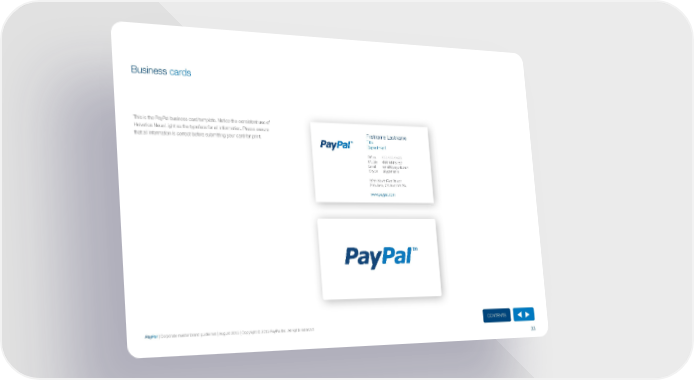 Business cards This is the PayPal business card template. Notice the consistent use of helvetica Neue Light as the typeface for all information. Please ensure Firstname Lastname that all information is correct before submitting your card for print. Title Department Office 555 555 5123 Mobile 444 444 6789 Email [email protected] Skype skypename 2211 North First Street San Jose, CA 95131 USA www.paypal.com ContentS PayPal | Corporate master brand guidelines | August 2013 | Copyright © 2013 PayPal Inc. All rights reserved. 33