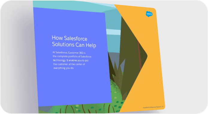 How Salesforce Solutions Can Help At Salesforce, Customer 360 is the complete portfolio of Salesforce technology. It enables you to put the customer at the center of everything you do. The COVID-19 Response Playbook | 33