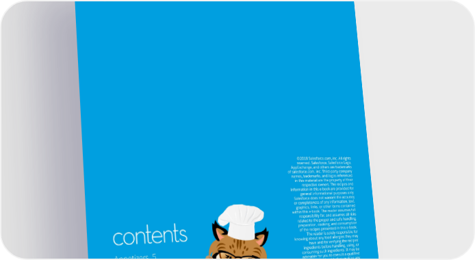 ON THE COVER: APP-TASTIC DEVILED EGGS page 8 ©2018 Salesforce.com, inc. All rights reserved. Salesforce, Salesforce Logo, AppExchange, and others are trademarks of salesforce.com, inc. Third-party company names, trademarks, and logos referenced in this material are the property of their respective owners. The recipes and information in this e-book are provided for general informational purposes only. Salesforce does not warrant the accuracy or completeness of any information, text, graphics, links, or other items contained within this e-book. The reader assumes full responsibility for, and assumes all risks related to the proper and safe handling, preparation, cooking, and consumption contents of the recipes presented in this e-book. The reader is solely responsible for knowing about any food allergies they may have and for verifying the recipes’ Appetizers 5 ingredients before handling, using, or consuming such ingredients. It may be Entrees 13 advisable for you to consult a qualified healthcare professional before making any Desserts 23 changes to your eating habits. 2