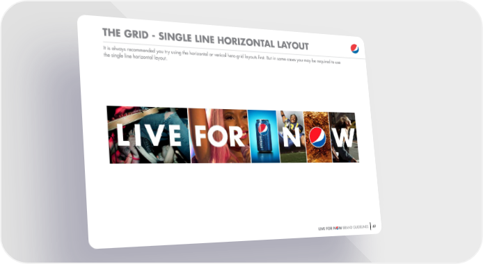 THE GRID - SINGLE LINE HORIZONTAL LAYOUT It is always recommended you try using the horizontal or verical hero grid layouts "rst. But in some cases you may be required to use the single line horizontal layout. LIVE FOR N W BRAND GUIDELINES 49