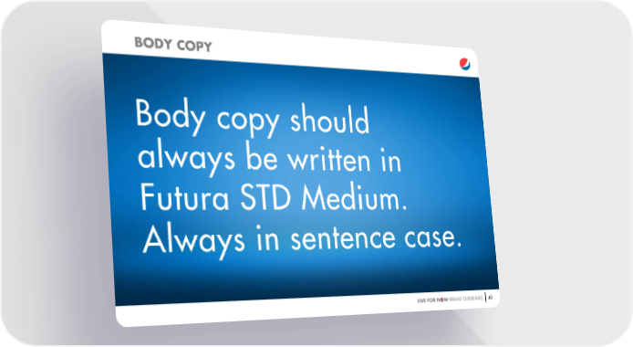 Pepsi Brand Book Page 24 Page 26BODY COPY Body copy should always be written in Futura STD Medium. Always in sentence case. LIVE FOR N W BRAND GUIDELINES 40