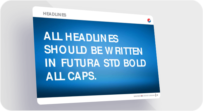 Pepsi Brand Book Page 23 Page 2539 LIVE FOR N W BRAND GUIDELINES ALL HEADLINES SHOULD B E WRITTEN IN FUTURA STD B OLD ALL CAPS. HEADLINES