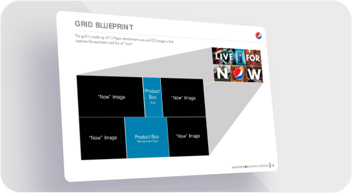 14 LIVE FOR N W BRAND GUIDELINES “Now” Image “Now” Image Product Box (Refreshment Cue) “Now” Image “Now” Image Product Box (Can) The grid is made up of (1) Pepsi refreshment cues and (2) imagery that captures the excitment and fun of “now”. GRID B LUEPRINT