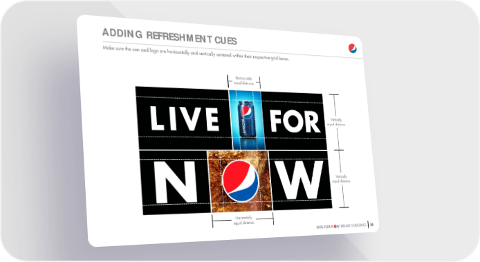 58 LIVE FOR N W BRAND GUIDELINES ADDING REFRESHMENT CUES Make sure the can and logo are horizontally and vertically centered within their respective grid boxes. Vertically equal distance. Vertically equal distance. Horizontally equal distance. Horizontally equal distance.
