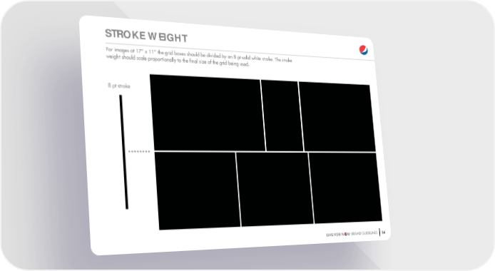 54 LIVE FOR N W BRAND GUIDELINES STROKE WEIGHT For images at 17” x 11” the grid boxes should be divided by an 8 pt solid white stroke. The stroke weight should scale proportionally to the " nal size of the grid being used. 8 pt stroke