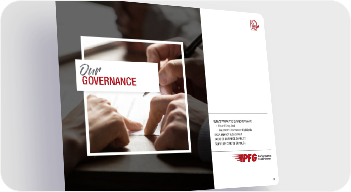 Performance Food Group ESG Report Page 27 Page 2928 GOVERNANCE Our OUR APPROACH TO ESG GOVERNANCE - Board Snapshot - Corporate Governance Highlights DATA PRIVACY & SECURITY CODE OF BUSINESS CONDUCT SUPPLIER CODE OF CONDUCT