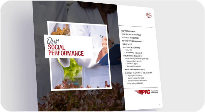 17 SOCIAL PERFORMANCE Our RESPONSIBLE SOURCING FOOD SAFETY & ACCOUNTABILITY INGREDIENT TRANSPARENCY HEALTH & NUTRITION OF PRODUCTS HUMAN RIGHTS DIVERSITY & INCLUSION (D&I) - D&I at PFG - D&I within our Supply Chain HUMAN CAPITAL MANAGEMENT - Associate Engagement & Appreciation - Compensation & Benefits - Associate Support - Training & Development OCCUPATIONAL HEALTH & SAFETY COMMUNITY ENGAGEMENT & COLLABORATION - Fighting Food Insecurity - Truckers Against Trafficking - Healthier Hearts & Communities - Responding to Disasters