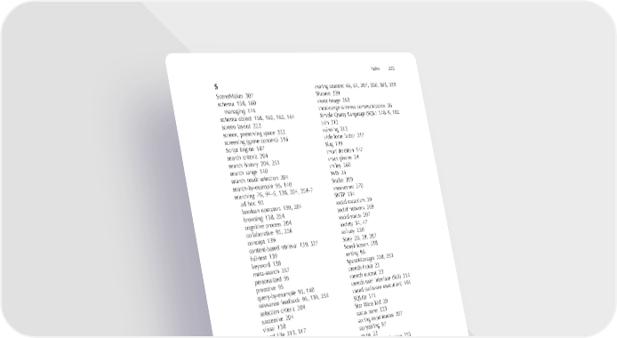 Index 355 S sharing content 46, 61, 207, 300, 303, 339 SceneMaker 307 Sharme 339 schema 158, 160 shoot image 263 managing 174 short-range wireless communication 36 schema object 158, 162, 163, 164 Simple Query Language (SQL) 178–9, 182 screen layout 223 skin 313 screen, preserving space 232 skinning 313 screening (game content) 316 slide form factor 217 Script Engine 187 Slug 119 search criteria 204 smart deletion 147 search history 204, 251 smart phone 24 search range 140 smiley 263 search result selection 204 SMS 24 search-by-example 95, 140 Snake 309 searching 76, 94–5, 138, 204, 254–7 sneakernet 270 ad hoc 95 SNTP 134 boolean operators 139, 204 social escapism 39 browsing 138, 254 social network 269 cognitive process 204 social status 207 collaborative 95, 256 society 34, 47 concept 139 softkey 220 content-based retrieval 139, 327 Sony 20, 39, 287 full-text 139 SonyEricsson 218 keyword 138 sorting 96 meta-search 257 SpaceManager 228, 233 personalized 95 speech input 23 proactive 95 speech output 23 query-by-example 95, 140 speech user interface (SUI) 214 relevance feedback 95, 139, 255 speed (software execution) 191 selection criteria 204 SQLite 171 successive 204 Star Wars Kid 29 visual 138 status pane 223 Second Life 313, 317 storing experiences 207 security 62, 97 storytelling 97 blocking 97 stylus 23 self-expression 303 subjective satisfaction 253 semantic web 179–81, 325 summarization, automatic 96 semantics 82, 157 summarization, storytelling 97 sending content 273 superdistribution 70 senses, human 202 Suunto 318 sensory memory 203 swiss army knife 20 sequential information presentation 223 swivel form factor 217 Series 60 22, 51, 223, 227, 247, 260, 279, Symbian 171, 223, 289 289 synchronization 133, 152, 271 Series 90 289 synchronized clock 133–4