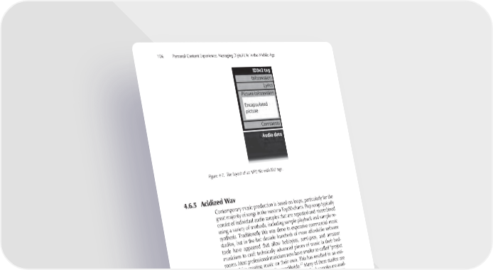 106 Personal Content Experience: Managing Digital Life in the Mobile Age Figure 4-7. The layout of an MP3 fi le with ID3 tags. 4.6.5 Acidized Wav Contemporary music production is based on loops, particularly for the great majority of songs in the western Top50 charts. Pop songs typically consist of individual audio samples that are repeated and recombined using a variety of methods, including sample playback and sample re- synthesis. Traditionally this was done in expensive commercial music studios, but in the last decade hundreds of more affordable software tools have appeared that allow hobbyists, semi-pros, and amateur musicians to craft technically advanced pieces of music in their bed- rooms. Most professional musicians now have smaller so-called “project studios” for creating music on their own. This has resulted in an esti- mated 350 37 000 project studios worldwide. Many of these studios use existing sound samples as their source material. Such samples are avail- able from a variety of sources, including sample collections on CDs and downloads from the Internet. The ACID fi le format for audio sample fi les quickly became popular with both professionals and amateur musicians when it was established in the late 1990s. Designed by Sonic Foundry for their ACID audio manipulation software, the format embeds extra information about the 37 Source: Anthony Grimani, Performance Media Industries (PMI) Ltd, Fairfax, CA, USA, in AES 121 conference in San Francisco, October 2006 (http://www.aes. org/121)