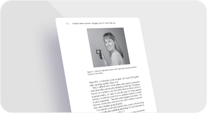 212 Personal Content Experience: Managing Digital Life in the Mobile Age Figure 6-2. Nokia N93 multimedia computer with a high-quality video recorder (Photo: Courtesy of Tero Hakala). Nokia N93, a multimedia mobile computer with nearly DVD-quality video capturing capability (Figure 6-2). What is different about mobile phone video capture compared to stand-alone video cameras is the intended use of the clips. The purpose may not be to produce a clip that will be shown to distant cousins or occasional visitors, but rather to store the event for future personal reference, to send out a proof of an extraordinary incident to a friend, or just to experiment – “since the camera happens to be there.” Fur- thermore, mobile video cameras are also used to enhance social pres- ence, and to facilitate group dynamics. A remarkable current trend related to video content is the increasing interest towards video publishing and sharing. For more discussion on this emerging topic, refer to section 7.3. An interesting subgenre in mobile videos is mobile micromovies. As the term suggests, this is a very short movie clip. Hannu Nieminen of Nokia characterized micromovies as follows, in a workshop in 5 Tampere Film Festival, 2002: • a new viewing situation • free distribution, and • grass-root level participation. 5 http://www.uta.fi /festnews/fn2002/eng/wed/microeng.html