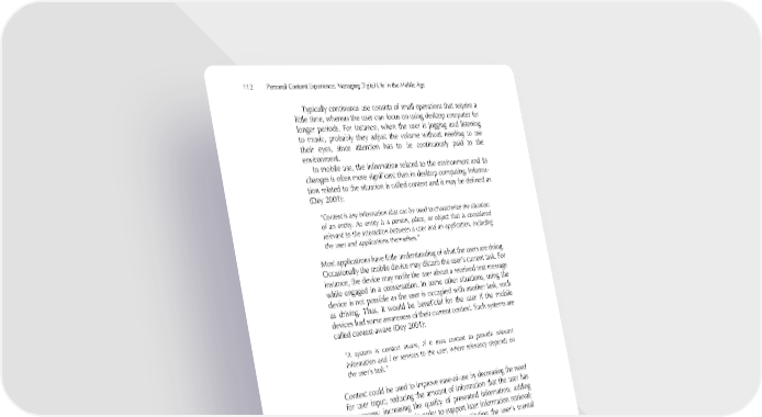 112 Personal Content Experience: Managing Digital Life in the Mobile Age Typically continuous use consists of small operations that require a little time, whereas the user can focus on using desktop computer for longer periods. For instance, when the user is jogging and listening to music, probably they adjust the volume without needing to use their eyes, since attention has to be continuously paid to the environment. In mobile use, the information related to the environment and its changes is often more signifi cant than in desktop computing. Informa- tion related to the situation is called context and it may be defi ned as (Dey 2001): “Context is any information that can be used to characterize the situation of an entity. An entity is a person, place, or object that is considered relevant to the interaction between a user and an application, including the user and applications themselves.” Most applications have little understanding of what the users are doing. Occasionally the mobile device may disturb the user’s current task. For instance, the device may notify the user about a received text message while engaged in a conversation. In some other situations, using the device is not possible as the user is occupied with another task, such as driving. Thus, it would be benefi cial for the user if the mobile devices had some awareness of their current context. Such systems are called context-aware (Dey 2001): “A system is context aware, if it uses context to provide relevant information and / or services to the user, where relevancy depends on the user’s task.” Context could be used to improve ease-of-use by decreasing the need for user input; reducing the amount of information that the user has to process; increasing the quality of presented information; adding context to information in order to support later information retrieval; and reducing the complexity of rules constituting the user’s mental model of the system (Cheverst et al. 2001; Dey 2001). There are many technologies for gathering context information, for instance, sensors embedded in the device, network services, and deriv- ing the information from other information. The gathered information is usually processed on the background and if not used immediately, can be stored for later use. 4.7.1 File Context Earlier we discussed how metadata may provide additional information about the content and enable various things that are benefi cial to the
