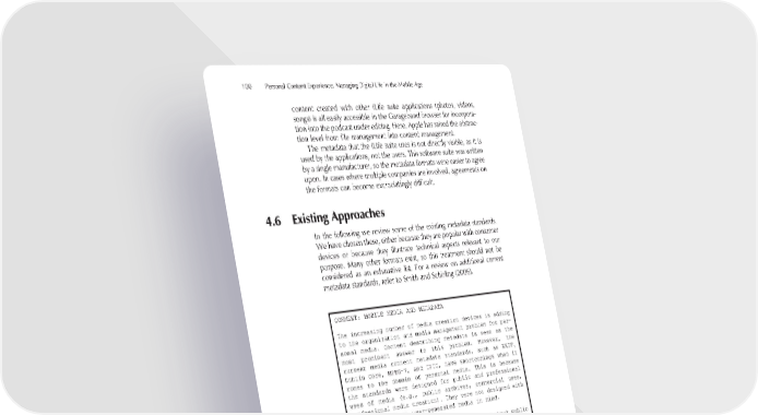 100 Personal Content Experience: Managing Digital Life in the Mobile Age content created with other iLife suite applications (photos, videos, songs) is all easily accessible in the Garageband browser for incorpora- tion into the podcast under editing. Here, Apple has raised the abstrac- tion level from fi le management into content management. The metadata that the iLife suite uses is not directly visible, as it is used by the applications, not the users. This software suite was written by a single manufacturer, so the metadata formats were easier to agree upon. In cases where multiple companies are involved, agreements on the formats can become excruciatingly diffi cult. 4.6 Existing Approaches In the following we review some of the existing metadata standards. We have chosen these, either because they are popular with consumer devices or because they illustrate technical aspects relevant to our purpose. Many other formats exist, so this treatment should not be considered as an exhaustive list. For a review on additional current metadata standards, refer to Smith and Schirling (2006). COMMENT: MOBILE MEDIA AND METADATA The increasing number of media creation devices is adding to the organization and media management problem for per- sonal media. Content describing metadata is seen as the most prominent answer to this problem. However, the current media content metadata standards, such as EXIF, Dublin Core, MPEG-7, and IPTC, have shortcomings when it comes to the domain of personal media. This is because the standards were designed for public and professional uses of media (e.g., public archives, commercial uses, professional media creation). They were not designed with personal media or user-generated media in mind. In personal media some fundamental principles about public and professional media and metadata do not hold true: Personal media and metadata are mostly private, not public. They are highly semantic, because the meanings associated to them are personal, and this means that automatic metadata generation is more diffi cult. Personal uses are different from public uses, for example, personal media is often shared in a private context within a social network. Lastly, metadata is a non-trivial concept for the average consumer to learn. None of the currently used media content metadata standards were designed with these principles in mind.