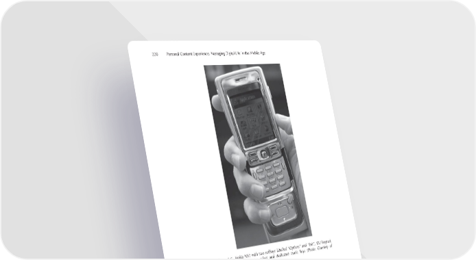 220 Personal Content Experience: Managing Digital Life in the Mobile Age Figure 6-5. Nokia N91 with two softkeys labelled “Options” and “Exit”, ITU keypad, 4-way joystick with centre select and dedicated music keys (Photo: Courtesy of Tero Hakala). As the number of physical keys on the surface of the device is limited, it uses softkeys to bypass this limitation. A softkey is a hardware key located near the screen, with its label visible on the edge of the display. The function of the key, such as opening a menu, and its label change depend on the current state of the device. Figure 6-5 shows two softkeys below the display. In addition to mobile devices, softkeys are ubiquitously found in ATMs around the world. Figure 6-5 also shows an example of a keypad for text input. The keypad is based on a standard and consists of numbers 0–9 and char-