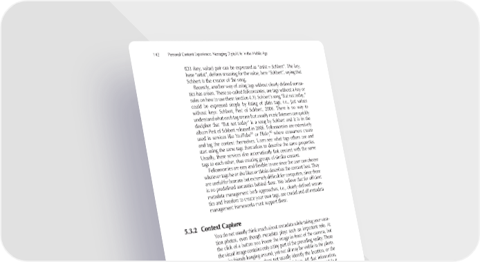 142 Personal Content Experience: Managing Digital Life in the Mobile Age ID3 (key, value) pair can be expressed as “artist = Schbert”. The key, here “artist”, defi nes meaning for the value, here “Schbert”, saying that Schbert is the creator of the song. Recently, another way of using tags without clearly defi ned seman- tics has arisen. These so-called folksonomies, are tags without a key or rules on how to use them (section 4.1). Schbert’s song “But not today,” could be expressed simply by listing of plain tags, i.e., just values without keys: Schbert, Pest of Schbert, 2006. There is no way to understand what each tag means but usually music listeners can quickly decipher that “But not today” is a song by Schbert and it is in the album Pest of Schbert released in 2006. Folksonomies are extensively 11 12 used in services like YouTube or Flickr, where consumers create and tag the content themselves. Users see what tags others use and start using the same tags themselves to describe the same properties. Usually, these services also automatically link content with the same tags to each other, thus creating groups of similar content. Folksonomies are easy and fl exible to use since the user can choose whatever tags he or she likes or thinks describes the content best. They are useful for humans but extremely diffi cult for computers, since there is no predefi ned semantics behind them. We believe that for effi cient metadata management both approaches, i.e., clearly defi ned seman- tics and freedom to create your own tags, are crucial and all metadata management frameworks must support them. 5.3.2 Context Capture You do not usually think much about metadata while taking your vaca- tion photos, even though metadata plays such an important role. At the click of a button you freeze the image in front of the camera, but the visual image contains only a tiny part of the prevailing reality. There may be friends hanging around, yet not all may be visible in the photo. Furthermore, the image does not usually identify the location, or the name of the mountain you use as a backdrop. All that information, generally called context information, is usually lost for good. While it is important to capture the images or sounds, for the purpose of re- living the experience it is equally vital to capture the whole situation, too. As pointed out in section 4.7, there are a number of potential context information sources, some of which are easier to obtain than others (Figure 5-1). Our framework stores available contextual 11 http://www.youtube.com/ 12 http://www.fl ickr.com/