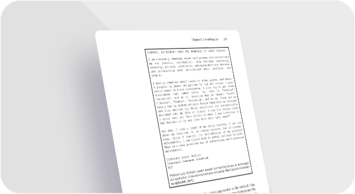 Chapter 8: Timeshifting Life 339 COMMENT: AN EXCERPT FROM THE HOMEPAGE OF LARRY RUDOLPH I am currently thinking about cell phones and controlling my own personal information. This includes searching, security, privacy, prediction, managing multiple devices, and interacting with distributed data, services, and people. I mostly remember stuff based on time, place, and event. I program my phone (in python) to tag all content I gen- erate based on these attributes. I also try to get these attributes into human terms. So, time is “working”, “relaxing”, and so on. Location may be “home”, “work”, “library”, “Boston”, “shopping”, and so on. These are my labels but my system actually learns them from my calendar and blog entries (my daily activities are automatically included into my blog or diary). I can fi nd things using a query such as: “who called me when I was listening to the Beatles on my way home from work last week?” Now that I have a model of my daily travels, I can lie about my location. It is mostly correct, but no guaran- tees. Since I control the distribution of my personal information, I can choose what to reveal and what to hide. This is a very powerful way of controlling one’s personal information. Professor Larry Rudolph Principal Research Scientist MIT (Professor Larry Rudolph’s current research and teaching focuses on technologies and applications of experimental pervasive computing. http://csg.csail.mit.edu/u/r/ rudolph/public_html/) We are experimenting with various approaches to life retrieval. One 9 of our research projects, Sharme, emphasises sharing of memories (the fundamental bits of life) with other people. It records life events and data with an embedded mobile phone application, which then trans- fers the data to a server (e.g., the user’s PC) for subsequent processing, storage, and retrieval. Figure 8-3 shows a prototype of the Sharme retrieval system. In the fi gure, the system has generated rudimentary summaries of someone’s photos and locations during a visit in Italy. The lifebase is shared with 9 http://www.sharme.org/