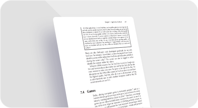 Chapter 7: Application Outlook 307 A: When uploading a video to YouTube, you’ve got the option to make it private and only seen by people you invite, but it’s a bit awkward sending out and having these invitations accepted. It’s so much easier just e-mailing a link which people can click. So we’d say go public with the video anyway just before the event, then take it down afterwards if you’re worried or embarrassed. Random viewers will almost certainly never fi nd it amongst the constant deluge of new uploads. In fact, many well-wishers rely on this fact and make their private greetings public on YouTube for ease of playback. Try searching for “Happy Birthday” and your mate’s name on YouTube and you may fi nd a hilarious alternative that you could send to them! There are also third-party tools developed specifi cally for use with YouTube. For instance, SceneMaker, a video-sharing tool from Gotuit, identifi es scenes within videos from YouTube and Metacafe, and allows sharing the scenes only.23 The scenes can also be tagged to better identify the content within the videos. Schwartz (2006) assumes that the YouTube buyout by Google was fi rst and foremost due to the market size and the fact that who has the most viewers in video sites wins the game at the end of the day. He also points out that 99% of the content in YouTube does not even have the slightest quality. And that, after all, is not at all important, as long as advertisements can be sold. Another viewpoint could be that the social networks are worth it. 7.4 Games 24 Today, playing (computer) games is immensely popular, and as a business domain games are expected to grow twice as fast as the movie 25 industry, reaching half of its volume by 2010. Therefore, even though games are not often included when content is discussed, we see it as one of the most important domains of GEMSing personal content. In this section, we will present the most important content types related to games, and discuss the emerging game types – mobile and pervasive games. As pointed out in section 7.2, location-aware games are a typical form of recently emerged new application types. Even though games themselves are not personal content as such, the content created for 23 http://blog.wired.com/monkeybites/2006/12/slice_tag_and_s.html 24 A study fi nds that among American teens, three out of four play “videogames” (HGVNU 2006). 25 http://www.businessweek.com/innovate/content/jun2006/id20060623_163211. htm