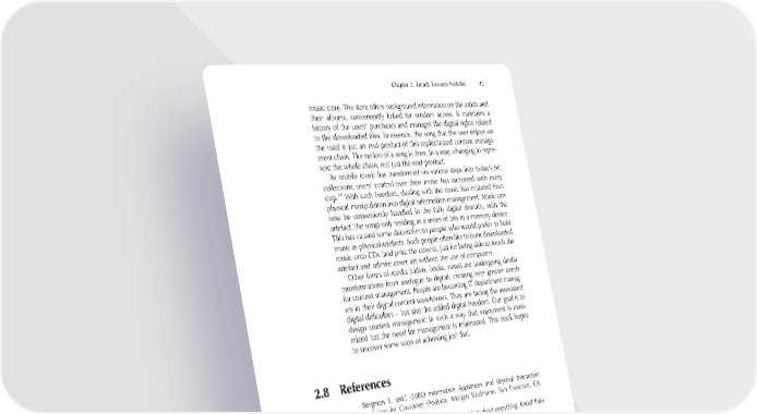 Chapter 2: Trends Towards Mobility 43 music store. The store offers background information on the artists and their albums, conveniently linked for random access. It maintains a history of the users’ purchases and manages the digital rights related to the downloaded fi les. In essence, the song that the user enjoys on the road is just an end-product of this sophisticated content manage- ment chain. The notion of a song is then, in a way, changing to repre- sent the whole chain, not just the end-product. As mobile music has transformed via various steps into today’s bit collections, users’ control over their music has increased with every 29 step. With such freedom, dealing with the music has mutated from physical manipulation into digital information management. Music can now be conveniently handled in the fully digital domain, with the artefact (the song) only residing as a series of bits in a memory device. This has caused some discomfort to people who would prefer to hold music as physical artefacts. Such people often like to burn downloaded music onto CDs (and print the covers), just for being able to touch the artefact and admire cover art without the use of computers. Other forms of media (video, books, news) are undergoing similar transformations from analogue to digital, creating ever greater needs for content management. People are becoming IT department manag- ers in their digital content warehouses. They are facing the associated digital diffi culties – but also the added digital freedom. Our goal is to design content management in such a way that enjoyment is maxi- mized but the need for management is minimized. This book hopes to uncover some ways of achieving just that. 2.8 References Bergman E. (ed.) (2000) Information Appliances and Beyond: Interaction design for Consumer Products. Morgan Kaufmann, San Francisco, CA, USA. Gleick J. (2000) FSTR – The acceleration of just about everything. Knopf Pub- lishing Group. Kopomaa T. (2000) The city in your pocket: Birth of the mobile information society. Gaudeamus, Helsinki, Finland. Lifton R.J. (1999) The Protean Self: human resilience in an age of fragmenta- tion. University of Chicago Press. 29 Consumers’ defi nition of “their content” will differ from that of record companies. As we write this, the notions of fair use, personal ownership, copyrights, and content protection are in a state of turmoil.