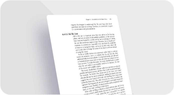 Chapter 6: User Interfaces for Mobile Media 245 requires the designer to understand that the users have often devel- oped their own style for working. Therefore, it is benefi cial to support UI customization and personalization. 6.4.1.5 Aid the User Aid to the user is important, since they may still be in the learning phase, and not yet aware of all available possibilities, or the task may have been interrupted for a while and the user is returning to it. Aiding the user also minimizes cognitive load. Therefore, the UI should com- municate its current state, especially if the state limits the availability of features or navigation steps, such as in an edit mode, where the user is only able to change the values of the object’s attributes instead of using the object. As far as mobile devices are concerned, online help is a primary source of assistance, since it is unlikely that the user has any other additional help material available. It is expected that the user will need to fi nd information about some actions, also when not trying to recover from an error. To make this easier, the system should know or predict what the user wishes to accomplish, based on, for instance, the state of the system and available objects. The system should direct the user with clues and hints on what are possible and typical actions, and how they could be performed faster. For example, the shortcut key shown next to the menu item’s label educates the user to use an accelerator; bolding the default menu item suggests the most typical command; and disabling items shows what cannot be done now. The order of actions in a menu or toolbar may represent the frequency of use and so frequent commands require less navigation steps. Similarly, the layout can be used to emphasize impor- tance, or the order of fi lling in information. If the order of fi lling is related to critical and rare tasks, the UI may contain a wizard, which divides the task into a set of steps and associ- ated views and controls, which the user must perform in a specifi c order. The wizard structures the task and assists the user to perform actions in the correct order, and to input required information by showing only the controls and information that are relevant to each step. Obviously, the wizard is not fl exible, as it controls the task fl ow instead of the user. Consequently, wizards should be used sparingly in the UI. Because text input with mobile devices is slower than with desktop computers, the UI designer should think of ways to reduce it. A tech- nique referred to as auto-fi ll tries to predict what data the user wishes to input in a certain fi eld based on, for instance, the system’s and the application’s states, the type and the format of the input fi eld, the