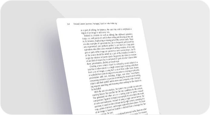 264 Personal Content Experience: Managing Digital Life in the Mobile Age as a part of editing; for instance, the user may wish to emphasize a region of an image or add some text. Related to creation (as well as editing), the clipboard operations (copy, cut, and paste) are useful when writing and drawing as they aid in, for instance, duplicating or moving parts of the content easily. These are also examples of operations that are so frequently performed that any experienced user probably prefers to use shortcuts. Copy-paste operations also offer a nice example of adding metadata. If text snip- pets or parts of the image are pasted to a new content object, the ID of the source should be added as a part of the metadata in order to imply the relations between objects. In general, this relates to creation of any kind of object that is composed of (parts of) other objects (slide show, presentation, playlist, personal map). Creating a new content object by composing content objects is a task that is either related to a single content type (creating a slideshow from a set of images, a song from a set of short audio tracks (loops), or a playlist from a set of songs) or it may relate to creating a multimedia presentation with text, drawings, images, and video. Nevertheless, composing content is a question of defi ning the desired set of existing objects and their spatial, and in some cases temporal, order. Compos- ing requires searching and browsing when seeking for the objects to be included. With the aid of metadata, the system may provide an auto-sum- marizing feature that searches for the best candidates for the content. The generated set often acts as a starting point for further manual composition. Figure 6-32 depicts an example of a view that is the result of auto-summarization. Instead of using a single content format, the summary is based on time (shown on top-right corner), consisting of a map, points-of-interest, and images captured in those places. The label of an image is based on location or derived from a message that has been sent on the spot. In addition to the above-mentioned personal media, there are other personal content objects that the user may wish to create. For instance, creating a new contact or calendar event requires fi lling in textual information (name, contact information, address, birthday, and affi lia- tion), as well as perhaps attaching another objects. Or the user may wish to create a personal ring tone by composing a MIDI song. Another increasingly important example is creating a point-of-inter- est to a certain geographical location (POIs are discussed in more detail in section 7.2). The simplest way is to get the current coordinates and store them for later use, but it may be reasonable to attach some label that describes the place and implies its relevancy. The label could be textual, which will make the search easier, but it could also be an image