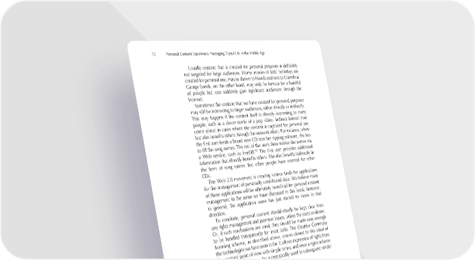 72 Personal Content Experience: Managing Digital Life in the Mobile Age Usually content that is created for personal purposes is defi nitely not targeted for large audiences. Home movies of kids’ birthdays are created for personal use, maybe shown to friends and sent to Grandma. Garage bands, on the other hand, may only be famous for a handful of people but can suddenly gain signifi cant audiences through the Internet. Sometimes the content that we have created for personal purposes may still be interesting to larger audiences, either directly or indirectly. This may happen if the content itself is directly interesting to many people, such as a clever remix of a pop video. Indirect interest may come about in cases where the content is captured for personal use but also benefi ts others through the network effect. For instance, when the fi rst user feeds a brand new CD into her ripping software, she has to fi ll the song names. The rest of the users then receive the names via 16 a Web service, such as freeDB. The fi rst user provides additional information that directly benefi ts others. She also benefi ts indirectly in the form of song names that other people have entered for other CDs. The Web 2.0 movement is creating various kinds for applications for the management of personally contributed data. We believe many of these applications will be ultimately benefi cial for personal content management in the sense we have discussed in this book; however, in general, the application wave has just started to move in that direction. To conclude, personal content should ideally be kept clear from any rights management and payment issues, unless the users so desire. Or, if such mechanisms are used, they should be made easy enough to be handled transparently for most tasks. The Creative Commons licensing scheme, as described above, comes closest to this ideal of the technologies we have seen so far. It allows expression of rights from the creators’ point of view with simple terms, and once a rights scheme has been chosen, it may be automatically used in subsequent similar works. 3.6 GEMS, a Tool for Modelling Personal Content Experience Throughout this chapter, we have learned that personal content is a phenomenon with implications to many areas of technology. What we 16 http://www.freedb.org/