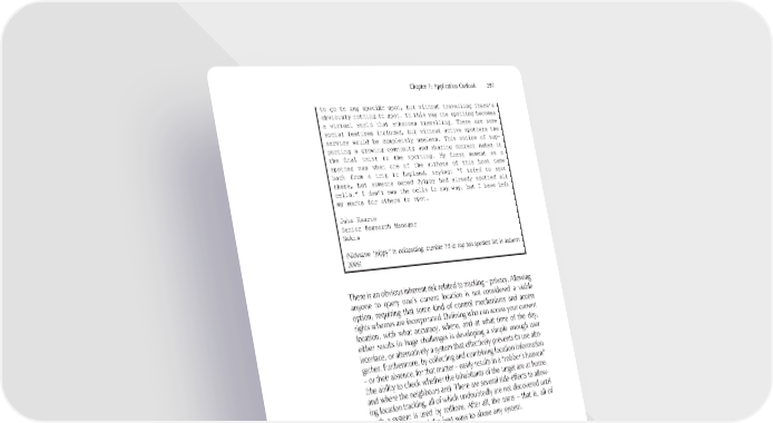 Chapter 7: Application Outlook 297 to go to any specifi c spot, but without travelling there’s obviously nothing to spot. In this way the spotting becomes a virtual world that enhances travelling. There are some social features included, but without active spotters the service would be completely useless. This notion of sup- porting a growing community and sharing content makes it the fi nal twist to the spotting. My fi nest moment as a spotter was when one of the authors of this book came back from a trip to Lapland, saying: “I tried to spot there, but someone named Jylppy had already spotted all cells.” I don’t own the cells in any way, but I have left my marks for others to spot. Juha Kaario Senior Research Manager Nokia (Nickname “Jylppy” in cellspotting, number 10 in top ten spotters list in autumn 2006) There is an obvious inherent risk related to tracking – privacy. Allowing anyone to query one’s current location is not considered a viable option, requiring that some kind of control mechanisms and access rights schemes are incorporated. Defi ning who can access your current location, with what accuracy, where, and at what time of the day, either results in huge challenges is developing a simple enough user interface, or alternatively a system that effectively prevents its use alto- gether. Furthermore, by collecting and combining location information – or their absence, for that matter – easily results in a “robber’s heaven” (the ability to check whether the inhabitants of the target are at home, and where the neighbours are). There are several side-effects to allow- ing location tracking, all of which undoubtedly are not discovered until such a system is used by millions. After all, the users – that is, all of us – will always fi nd the best ways to abuse any system. SHE’S NOT THERE Eddie. Eddie wants this, Eddie wants that. Eddie decides this and then they do it. Angie just follows. Why is it that somehow it’s always him behind the wheel? Angie just thinks it’s maybe easier to let him have his way. He’s such a diffi cult person sometimes. What wouldn’t a girl do for her guy? Now, Angie had once again received a place ping from Eddie. She would normally have okayed it, as she’s got nothing to hide from her dear boyfriend. This time though, she hesitated revealing her location, which was by