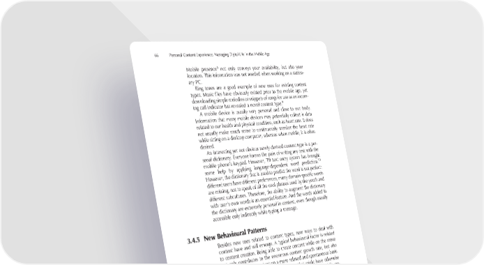 66 Personal Content Experience: Managing Digital Life in the Mobile Age 8 Mobile presence not only conveys your availability, but also your location. This information was not needed when working on a station- ary PC. Ring tones are a good example of new uses for existing content types. Music fi les have obviously existed prior to the mobile age, yet downloading simple melodies or snippets of songs for use as an incom- 9 ing call indicator has revealed a novel content type. A mobile device is usually very personal and close to our body. Information that many mobile devices may potentially collect is data related to our health and physical condition, such as heart rate. It does not usually make much sense to continuously monitor the heart rate while sitting on a desktop computer, whereas when mobile, it is often desired. An interesting yet not obvious newly-derived content type is a per- sonal dictionary. Everyone knows the pain of writing any text with the mobile phone’s keypad. However, T9 text entry system has brought 10 some help by applying language-dependent word prediction. However, the dictionary that is used to predict the word is not perfect: different users have different preferences, many domain-specifi c words are missing, not to speak of all the cool phrases used by the youth and different subcultures. Therefore, the ability to augment the dictionary with user’s own words is an essential feature. And the words added in the dictionary are extremely personal in content, even though usually accessible only indirectly while typing a message. 3.4.5 New Behavioural Patterns Besides new uses related to content types, new ways to deal with content have and will emerge. A typical behavioural factor is related to content creation. Being able to create content while on the move not only contributes to the enormous content growth rate, but also makes users create content on a more relaxed and spontaneous basis. This, in turn, results in storing information that might have otherwise never been captured and retained. One could claim that mobile cre- ation and access is to personal content what writing once was for 8 An example of mobile presence attributes is provided by Wireless Village initiative that is part of Open Mobile Alliance (OMA). See: http://www.openmobilealliance. org/tech/affi liates/wv/wv_pa_v1.0.pdf 9 One could argue that in the PC world, song snippets have been assigned to events in a similar fashion for more than a decade. Compared to the whole business models built around selling ring tones, however, it is a minor issue. 10 http://www.t9.com/