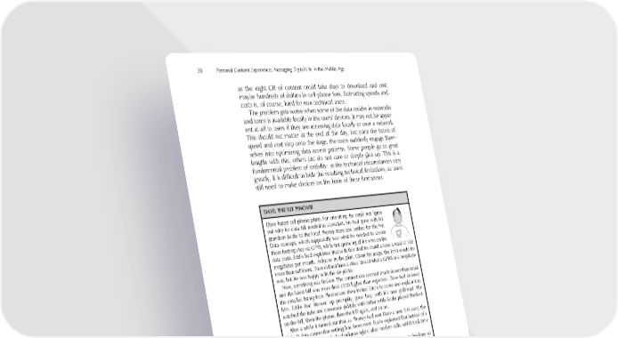 28 Personal Content Experience: Managing Digital Life in the Mobile Age as the eight GB of content could take days to download and cost maybe hundreds of dollars in cell phone fees. Estimating speeds and costs is, of course, hard for non-technical users. The problem gets worse when some of the data resides in networks and some is available locally in the users’ devices. It may not be appar- ent at all to users if they are accessing data locally or over a network. This should not matter at the end of the day, but once the issues of speed and cost step onto the stage, the users suddenly engage them- selves into optimizing data access patterns. Some people go to great lengths with this; others just do not care or simply give up. This is a fundamental problem of mobility: as the technical circumstances vary greatly, it is diffi cult to hide the resulting technical limitations, as users still need to make choices on the basis of these limitations. DAVE, THE BIT PINCHER Dave hated cell phone plans. For one thing, he could not fi gure out why his data bill tended to skyrocket. He had gone with his grandson Eddie to the local Phoney store and settled for the Mr. Data concept, which supposedly was what he needed to access those betting sites via GPRS, while not spending all his wins on the data costs. Eddie had explained that with this deal he could access a total of 100 megabytes per month, included in the plan. Given his usage, the limit would be more than suffi cient. Dave did not have a clear idea of what a GPRS or a megabyte was, but he was happy with the simplicity. Now, something was broken. The connections seemed much slower than usual and the latest bill was more than £100 higher than expected. Dave had ordered the detailed listing from Phoney and then invited Eddie to come and explain it to him. Eddie had showed up promptly, good boy, with his new girlfriend. She watched the tube and conversed politely with Esther while Eddie played Sherlock on the bill, then the phone, then the bill again, and so on. After a while it turned out that, as Phoney had sent Dave a new SIM card, the default data connection settings had been reset. Eddie explained that instead of a native data connection he had unknowingly dialled modem calls, which took time and therefore cost money, while being so slow. Dave felt helpless. How could he have known? Why was new technology so obscure? Give him something that he can hit with a wrench, and he would be happy. If it leaked, Dave could fi x it – but this new tech did not just leak, it was totally broken. Mobility also means that the users’ data moves about in various envi- ronments. Some of these places can be hostile. For instance, WLAN networks are vulnerable to wireless attacks. Mobile devices with WLAN could be exposed to attacks simply by being within reach of a network with rogue devices. An attacker could lurk in a mall waiting for people