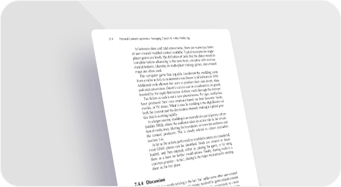 314 Personal Content Experience: Managing Digital Life in the Mobile Age In between skins and total conversions, there are numerous forms of user-created modded content available. Typical examples for single- player games are levels, the defi nition of tasks that the player needs to complete before advancing to the next level, complete with environ- mental features. Likewise, in multi-player strategy games, user-created maps are often used. The computer game that arguably transferred the modding scene from a niche activity to mainstream was Doom by id Software in 1993. Additional tools allowed the users to produce their own levels, skins, and total conversions. Doom’s success can be considered to be greatly boosted by the rapid distribution of these mods through the Internet. Fan fi ction as such is not a new phenomenon. For ages, media fans have produced their own creations based on their favourite books, movies, or TV shows. What is new in modding is the digitalization of both the content and the distribution channel, making it a global prac- tice that is evolving rapidly. In a larger context, modding is an example of a participatory culture (Jenkins 1992), where the audience takes an active role in the circula- tion of media texts, blurring the boundaries between the audience and the content producers. This is closely related to citizen journalism (section 3.4). As far as the actions performed on modded content are considered, most GEMS phases can be identifi ed. Mods are created or down- loaded, and then enjoyed, either by playing the game, or by using them as a basis for further modifi cations. Finally, sharing mods is a common practice – in fact, sharing is the major motivation for creating them in the fi rst place. 7.4.4 Discussion What is worth noticing is the fact that unlike some other user-created content, there is often real money involved in game-related content creation. The fact that the user pays for the opportunity to create content is an interesting notion. Compare this to paying for each photo you take with your camphone! CRAP DE LA CRAP Eddie’s an on-off gamer. He likes to try out new game warez, but he’s not deep into it like some of the boyz in the ’hood. However, once he decides to get busy with a new game, he will really dig deep into it and only come out when he’s exhausted every possible twist that game has in store for him.
