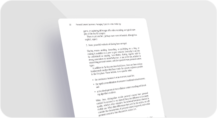 58 Personal Content Experience: Managing Digital Life in the Mobile Age game, or capturing still images off a video recording, are typical exam- ples of the fourth category. There is yet another, perhaps even more infl uential, although less explicit, aspect: 5. More powerful methods of sharing have emerged. Sharing means sending, forwarding, or publishing on a blog, or making it available on a peer-to-peer network. Essentially it can also be understood as copying. Nevertheless, sharing, together with its strong associations to social behaviour, is one of the key activities in researching personal content, and also typical of many personal content types. In addition to the features described above, there are three obvious fundamental enablers that have made the content explosion possible in the fi rst place. These include, in no specifi c order: • the continuous increase in mass memory capacities; • the rapid commoditization of consumer broadband network access; and • active development of more effi cient content encoding and decod- ing algorithms (codecs). What, then, distinguishes mobile personal content from personal content? In section 2.3, we claimed that a key difference is in content quality, which is often related to the technical limitations inherent in mobile use. What other differences there are? In this section, we will consider the characteristics of personal content in general, and mobile personal content is then discussed in section 3.4. 3.3.1 Content Explosion The above discussion about content explosion leads us to the fi rst characteristics typical of personal content – its growth rate. It will heavily infl uence both system design of personal content management system and experience; for instance, Apple’s iPhoto 6 is prepared to 7 manage 250 000 photos. To put this in perspective, the mean number of captured digital images per month in the US was 75 in year 2005 (IDC 2005). With such a rate, it would take nearly 300 years for iPhoto’s limits to be met . . . 7 http://www.apple.com/ilife/iphoto/