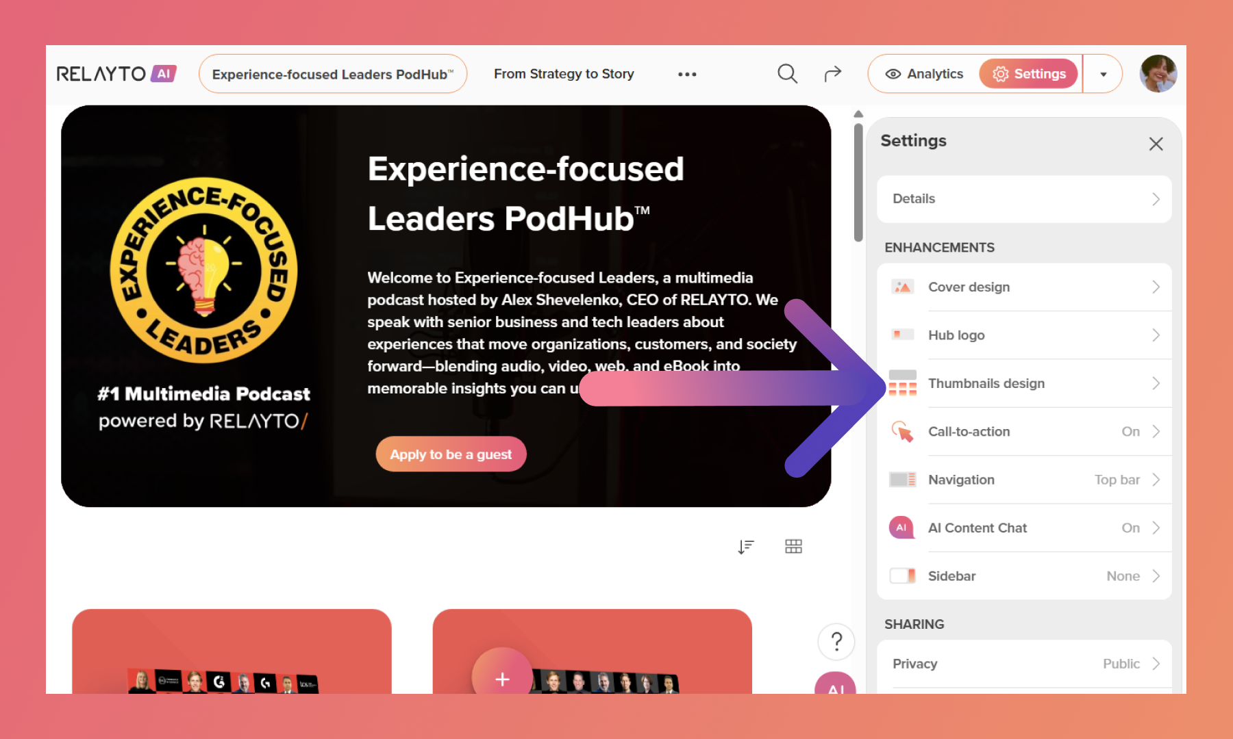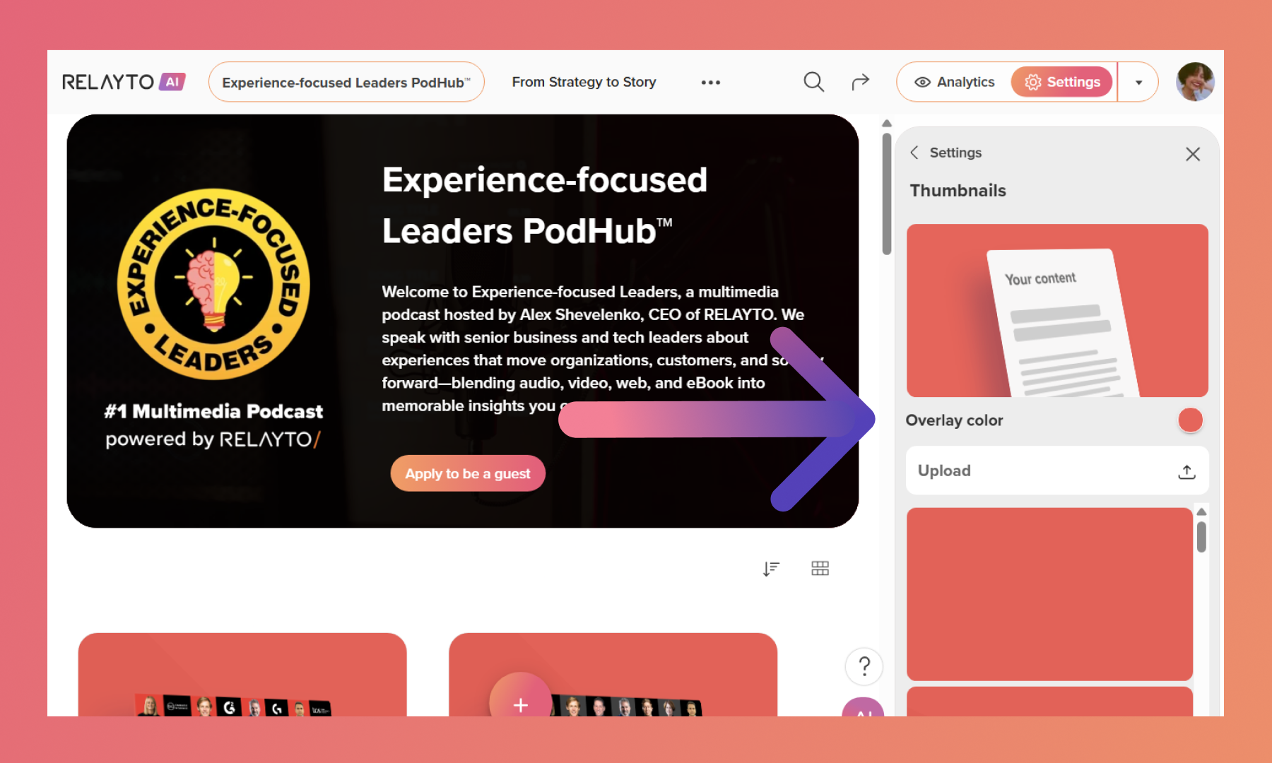 RELAYTO now automatically creates polished, professional thumbnails for every document you upload—no design skills needed. Customize with one-click color, image, and overlay tweaks, plus add subtle 3D hover effects to elevate your content hubs and boost engagement.