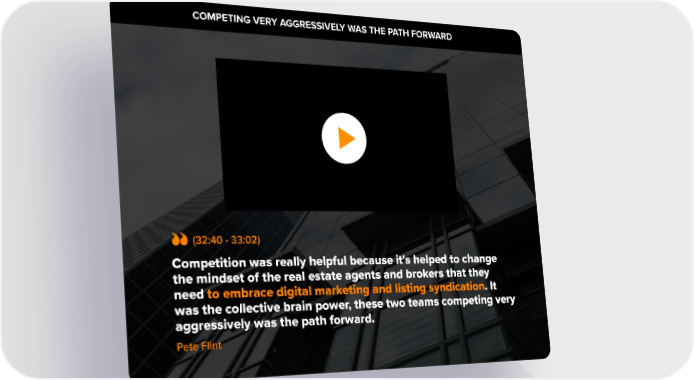 COMPETING VERY AGGRESSIVELY WAS THE PATH FORWARD 1. Domestic & General started out over 100 years ago, ensuring cattle and sheep rights. So not long after the Titanic went down there was a need all of a sudden to have protection and insurance on your livestock. (32:40 - 33:02) Competition was really helpful because it's helped to change the mindset of the real estate agents and brokers that they need to embrace digital marketing and listing syndication. It was the collective brain power, these two teams competing very aggressively was the path forward. Pete Flint