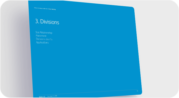 Pfizer Brand Book Page 85 Page 8786 Version 1.2 December 11, 2009 Size Relationship Placement Divisions: don’ts Applications Pfizer Branding Guidelines / Visual i dentity 3. Divisions