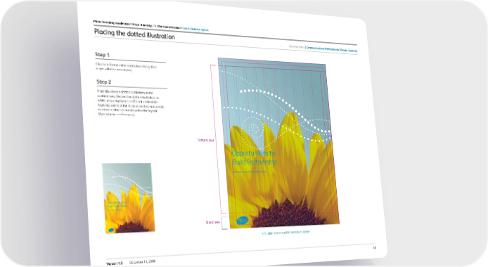 66 Version 1.2 December 11, 2009 Placing the dotted illustration Content area Brand area Opportunities to Build Partnership New acquisitions for a healthier world Opportunities to Build Partnership New acquisitions for a healthier world Pfizer Branding Guidelines / Visual i dentity / 1. the masterbrand / how to build a layout step 1 Choose a theme in the illustration library that aligns with the messaging. step 2 Place the chosen dotted illustration in the content area. Render the dotted illustration in white, ensuring there is sufficient contrast for legibility and that the illustration does not violate or obscure other elements within the layout (typography and imagery). U.S. letter size is used for sample purposes. Content area Brand area Opportunities to Build Partnership New acquisitions for a healthier world Opportunities to Build Partnership New acquisitions for a healthier world General users c ommunications Professionals design agencies