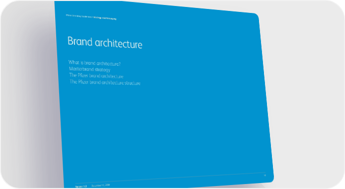 10 Version 1.2 December 11, 2009 What is brand architecture? Masterbrand strategy The Pfizer brand architecture The Pfizer brand architecture structure Brand architecture Pfizer Branding Guidelines / strategy and messaging