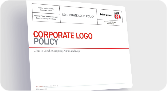 CORPORATE LOGO POLICY Owner: senior advisor, Corporate Brand Approver: Tami Walker, manager, Brand and Integrated Media Date Issued/Revised: May 2017 Policy Center CORPORATE LOGO POLICY PHILLIPS 66 CORPORATE LOGO POLICY | DRM CODE ADM080 How to Use the Company Name and Logo Date Issued / Revised August 2018