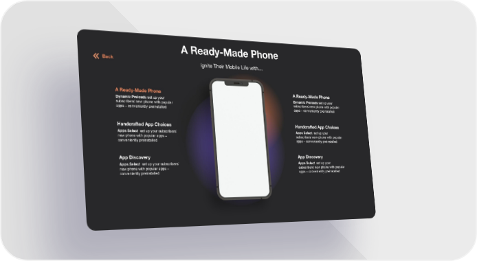 A Ready-Made Phone Back Ignite Their Mobile Life with… A Ready-Made Phone A Ready-Made Phone Dynamic Preloads set up your Dynamic Preloads set up your subscribers’ new phone with popular subscribers’ new phone with popular apps – conveniently preinstalled apps – conveniently preinstalled Handcrafted App Choices Handcrafted App Choices Apps Select set up your subscribers’ Apps Select set up your new phone with popular apps – subscribers’ new phone with popular conveniently preinstalled apps – conveniently preinstalled App Discovery App Discovery Apps Select set up your subscribers’ Apps Select set up your new phone with popular apps – subscribers’ new phone with popular conveniently preinstalled apps – conveniently preinstalled