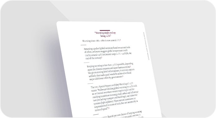 — t “armin miht end up n bein 1.5°‚” e xt Šarmin since 1—Ÿ1–1——0 is now around 1°C‚! r e e o c n — e t s i ssumin a path of lobal emissions based on current leels x t e of effort estimates suest lobal temperature could u o rise b around 2‚ž°C ›estimated rane 2‚1°C – ‚ž°Cœ b the b s a n o end of the centur‚@ i t s e — u q §eepin warmin to less than 1‚”°C is possible dependin upon the climate response and upon human actions # but ien existin fossil infrastructure it currentl appears unliƒel that such a oal would be achieed without mašor additional effort b oernments‚$ — …he ipcc Special ’eport on Œlobal Šarmin of 1‚”°C states “ˆathwas limitin lobal warmin to 1‚”°C with no or limited oershoot would reuire rapid and far„ reachin transitions in ener land urban and infrastruc„ ture ›includin transport and buildinsœ and industrial sstems (high confidence)‚ …hese sstem transitions are unprecedented in terms of scale but not necessaril in terms of speed”‚% — Žor a reater than ŸŸ per cent chance of ƒeepin warmin to under 1‚”°C net human emissions could continue at present leels for onl a decade or so and then immediatel hae to drop to net zero to stabilize temperatures — near net„zero emissions are reuired to stabilize temperatures at an leel‚^ lternatiel net emissions miht be reduced linearl to zero oer a period of two decades or so‚ 1 nasa 201ž 2 Climate ction …racƒer 2020 Millar et al‚ 201¡ ‘ ˆfeiffer et al‚ 201— ” Masson„Delmotte et al‚ 201— p‚1” Ÿ Matthews ¦ Caldeira 200— 1Ÿ
