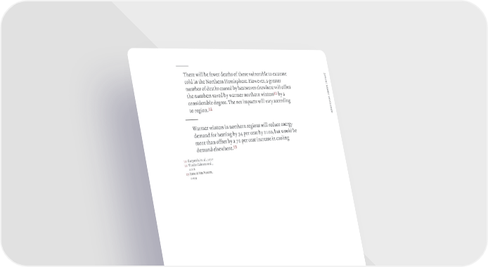 — …here will be fewer deaths of those ulnerable to extreme t c a cold in the “orthern Hemisphere‚ Howeer a reater p m number of deaths caused b heatwaes elsewhere will offset t i u o the numbers saed b warmer northern winters!! b a b s a considerable deree‚ …he net impacts will ar accordin n o i t to reion‚!@ s e u — q Šarmer winters in northern reions will reduce ener demand for heatin b ‘ per cent b 2100 but would be more than offset b a ¡2 per cent increase in coolin demand elsewhere‚!# 11 Œasparrini et‚ al‚ 201¡ 12 ¯icedo„Cabrera et al‚ 201— 1 ‹saac ¦ ¯an ¯uuren 200ž 2ž