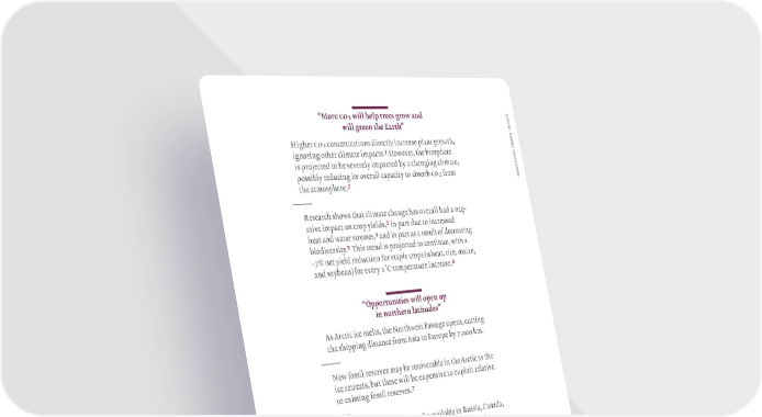 — t “‡ore co2 will help trees row and c a will reen the ˆarth” p m t i u Hiher co2 concentrations directl increase plant rowth o b inorin other climate impacts‚! Howeer the biosphere s a n o is prošected to be seerel impacted b a chanin climate i t s possibl reducin its oerall capacit to absorb co2 from e u the atmosphere‚@ q — ’esearch shows that climate chane has oerall had a ne„ atie impact on crop ields # in part due to increased heat and water stresses $ and in part as a result of decreasin biodiersit‚% …his trend is prošected to continue with a ¬¡® net ield reduction for staple crops ›wheat rice maize and sobeanœ for eer 1°C temperature increase‚^ — “‰pportunities will open up in northern latitudes” s rctic ice melts the “orthwest ˆassae opens cuttin the shippin distance from sia to Europe b ¡ 000 ƒm‚ — “ew fossil reseres ma be recoerable in the rctic as the ice retreats but these will be expensie to exploit relatie to existin fossil reseres‚& — More arable land is liƒel to be aailable in ’ussia Canada and “orthern ‡nited States‚* Howeer decreases in aricultural land in the lobal south ( and Central merica will outweih increases in the lobal north’s aricultural iabilit creatin risƒs of food shortaes and international securit challenes‚!) 1 §imball 201Ÿ Ÿ ´hao et al‚ 201¡ 2 §örner 2000 ¡ Emmerson ¦ £ahn Schleussner et al‚ 2012 201— — ´abel et al‚ 201‘ ‘ £obell et al‚ 2011 ž ‹m et al‚ 201¡ ” ¢élaner ¦ ˆillin 10 nato, 215 201ž 2—