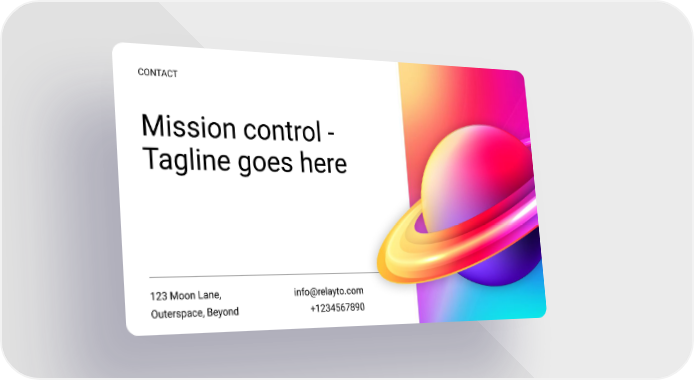 CONTACT Mission control - Tagline goes here 123 Moon Lane, [email protected] Outerspace, Beyond +1234567890