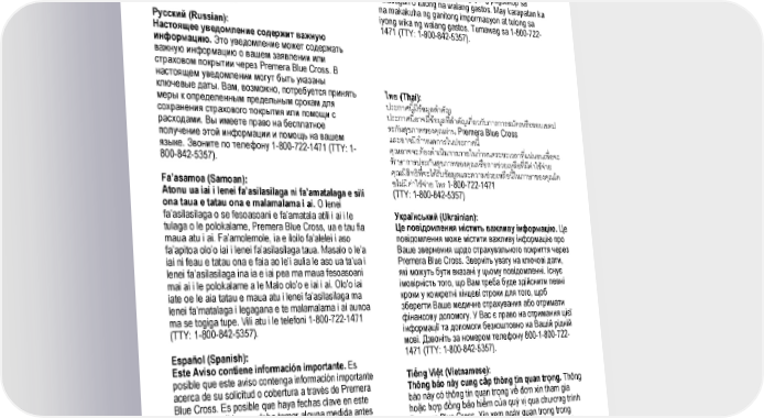 de sănătate prin Premera Blue Cross. Pot exista date naglalaman ng mahalagang impormasyon tungkol sa cheie în această notificare. Este posibil să fie nevoie să iyong aplikasyon o pagsakop sa pamamagitan ng acționați până la anumite termene limită pentru a vă Premera Blue Cross. Maaaring may mga mahalagang menține acoperirea asigurării de sănătate sau asistența petsa dito sa paunawa. Maaring mangailangan ka na privitoare la costuri. Aveți dreptul de a obține gratuit magsagawa ng hakbang sa ilang mga itinakdang aceste informații și ajutor în limba dumneavoastră. Sunați panahon upang mapanatili ang iyong pagsakop sa la 1-800-722-1471 kalusugan o tulong na walang gastos. May karapatan ka (TTY: 1-800-842-5357). na makakuha ng ganitong impormasyon at tulong sa iyong wika ng walang gastos. Tumawag sa 1-800-722- Pусский (Russian): 1471 (TTY: 1-800-842-5357). Настоящее уведомление содержит важную информацию. Это уведомление может содержать важную информацию о вашем заявлении или страховом покрытии через Premera Blue Cross. В настоящем уведомлении могут быть указаны ключевые даты. Вам, возможно, потребуется принять ไทย (Thai): меры к определенным предельным срокам для ประกาศนีม้ ีขอม้ ลสู าค ญั сохранения страхового покрытия или помощи с ประกาศนีอาจม้ ีขอม้ ลทีู ่ สาค ญเั ก่ียวกบการั การสมครหั รอขอื บเขตป расходами. Вы имеете право на бесплатное ระกนสั ขภุ าพของคณผ่านุ Premera Blue Cross получение этой информации и помощь на вашем และอาจมีกาหน ดการในประกาศนี ้ языке. Звоните по телефону 1-800-722-1471 (TTY: 1- คณอาจจะุ ตองด้ าเนินการภายใ นกาหนดระยะเ วลาที่แน่นอนเพื่อจะ 800-842-5357). รกษาการประกั นสั ขภุ าพของคณหรุ อการช่วยเื หลือที่มีคาใช่ จ่า้ ย คณมุ ีสิทธิที่จะไดร้ บขั อม้ ลและคู วามช่วยเหลือนีในภ้ าษาของคณโุ ด Fa’asamoa (Samoan): ยไม่มีคาใช่ จ่าย้ โทร 1-800-722-1471 Atonu ua iai i lenei fa’asilasilaga ni fa’amatalaga e sili (TTY: 1-800-842-5357) ona taua e tatau ona e malamalama i ai. O lenei fa’asilasilaga o se fesoasoani e fa’amatala atili i ai i le Український (Ukrainian): tulaga o le polokalame, Premera Blue Cross, ua e tau fia Це повідомлення містить важливу інформацію. Це maua atu i ai. Fa’amolemole, ia e iloilo fa’alelei i aso повідомлення може містити важливу інформацію про fa’apitoa olo’o iai i lenei fa’asilasilaga taua. Masalo o le’a Ваше звернення щодо страхувального покриття через iai ni feau e tatau ona e faia ao le’i aulia le aso ua ta’ua i Premera Blue Cross. Зверніть увагу на ключові дати, lenei fa’asilasilaga ina ia e iai pea ma maua fesoasoani які можуть бути вказані у цьому повідомленні. Існує mai ai i le polokalame a le Malo olo’o e iai i ai. Olo’o iai імовірність того, що Вам треба буде здійснити певні iate oe le aia tatau e maua atu i lenei fa’asilasilaga ma кроки у конкретні кінцеві строки для того, щоб lenei fa’matalaga i legagana e te malamalama i ai aunoa зберегти Ваше медичне страхування або отримати ma se togiga tupe. Vili atu i le telefoni 1-800-722-1471 фінансову допомогу. У Вас є право на отримання цієї (TTY: 1-800-842-5357). інформації та допомоги безкоштовно на Вашій рідній мові. Дзвоніть за номером телефону 800-1-800-722- Español (Spanish): 1471 (TTY: 1-800-842-5357). Este Aviso contiene información importante. Es posible que este aviso contenga información importante Tiếng Việt (Vietnamese): acerca de su solicitud o cobertura a través de Premera Thông báo này cung cấp thông tin quan trọng. Thông Blue Cross. Es posible que haya fechas clave en este báo này có thông tin quan trọng về đơn xin tham gia aviso. Es posible que deba tomar alguna medida antes hoặc hợp đồng bảo hiểm của quý vị qua chương trình de determinadas fechas para mantener su cobertura Premera Blue Cross. Xin xem ngày quan trọng trong médica o ayuda con los costos. Usted tiene derecho a thông báo này. Quý vị có thể phải thực hiện theo thông recibir esta información y ayuda en su idioma sin costo báo đúng trong thời hạn để duy trì bảo hiểm sức khỏe alguno. Llame al 1-800-722-1471 hoặc được trợ giúp thêm về chi phí. Quý vị có quyền (TTY: 1-800-842-5357). được biết thông tin này và được trợ giúp bằng ngôn ngữ của mình miễn phí. Xin gọi số Tagalog (Tagalog): 1-800-722-1471 (TTY: 1-800-842-5357). Ang Paunawa na ito ay naglalaman ng mahalagang impormasyon. Ang paunawa na ito ay maaaring